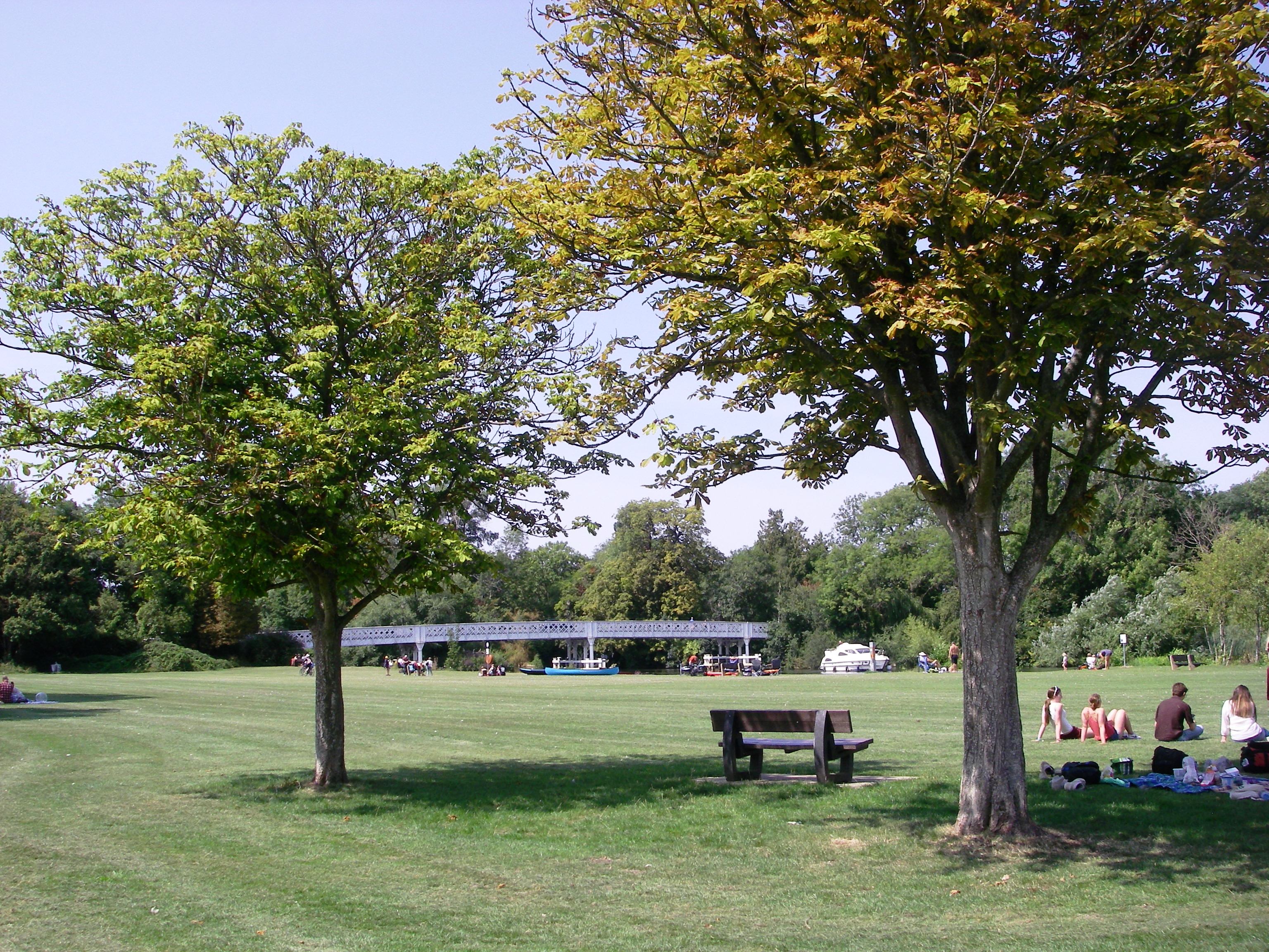 1: Reading Station. Leave the station on the northern side. Cross the bus station then the main road at the traffic lights. Turn right, then left down Norman place on the cycleway to the river. Turn left along the bank and pass the Christchurch footbridge. Go under Caversham Bridge where waterfowl congregate and river cruises may be booked. There are seats along the promenade and panoramic views across the river. Further along is the site of the popular Reading Festival which takes place at the end of August. Motor boats, kayaks and canoes may be hired from the boatyard at Scours Lane. The path then becomes squeezed between the railway and the river. Pass Appletree Eyot and Poplar Island and continue to the obsolete Roebuck Hotel sign where the steps on the left go up to the road.
