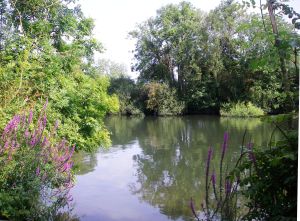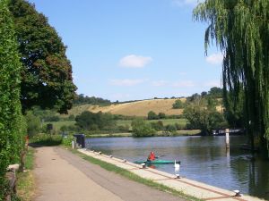 2: Steps to road. Tilehurst Station is along the road to the left. Turn right for the Thames Path and soon right again into a copse. Turn left into Hazel Rd and go up the hill. From the top is a good view over Purley. Descend to the road junction and turn right over the railway. At next road junction jink left and right down Mapledurham Drive and go through the gate to the river at Mapledurham Lock. The next two miles is a pleasant meander through the water meadows with the picturesque Chiltern Hills on the right. Just before the toll bridge between Pangbourne and Whitchurch turn left through the trees to the Dolphin Activity Centre where refreshments are available in the car park in the summer months.