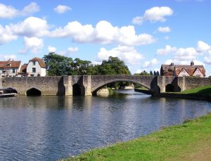 2: Clifton Hampden Bridge. Carefully cross the bridge and go down to the riverbank again. A little further on Clifton Lock marks the beginning of the Clifton Cut, which was constructed to bypass a wiggly section of the river. At the other end there is a weir where the river diverges. Continue through the water meadows for another two miles, passing under the railway bridge. Just before the village the Culham Cut slices off another section of the river. Cross the road and soon come to Culham Lock. The Cut is less than a mile long and rejoins the river on a bend at the start of Culham Reach. Cross the Back Water where it joins the river as the town of Abingdon looms up on the far bank. Go through a pleasant recreational area and soon come the Abingdon Bridge.