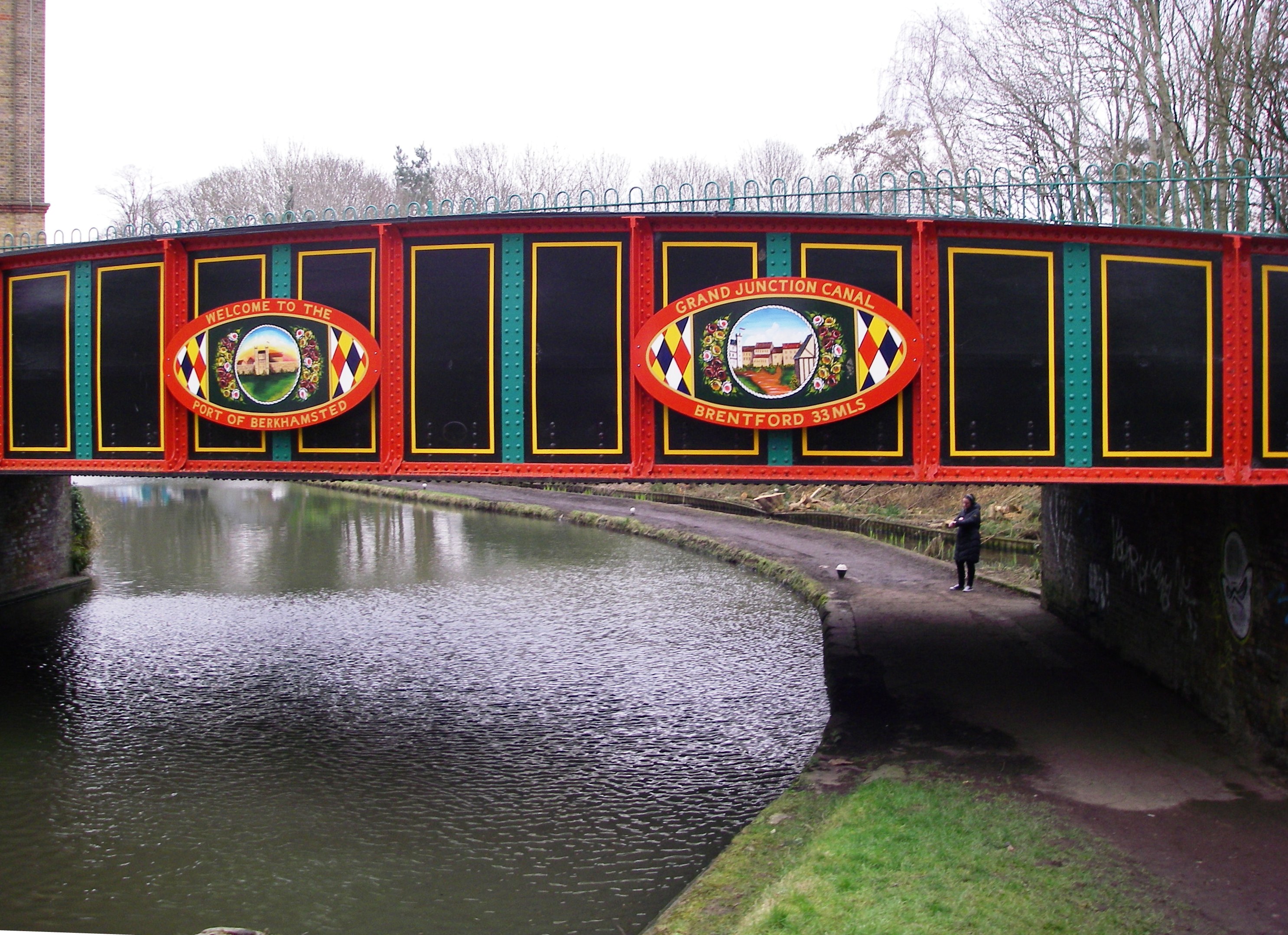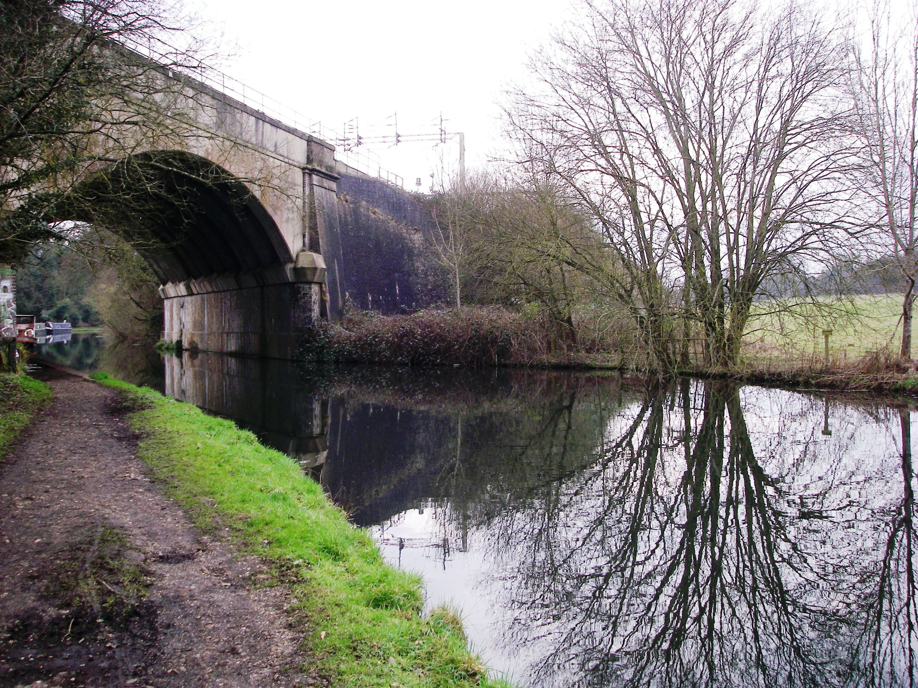 2: Stephenson’s Bridge. Continue past a lock and a minor road bridge. The Fishery Inn is across the next road bridge and Hemel Hempstead Station can be reached by turning right, crossing the road and taking the footpath on the left to cross the main road. After going under two main roads Frogmore Paper Mill, the last working paper mill in the area, is on an island on the right. There are several cafes and pubs in the area. Soon Apsley Station is on the right. The canal continues to follow the railway line, going under the bridge a little further on. After another mile and a half a road bridge gives access to Kings Langley Station on the left as the sound of the M25 traffic gets louder.