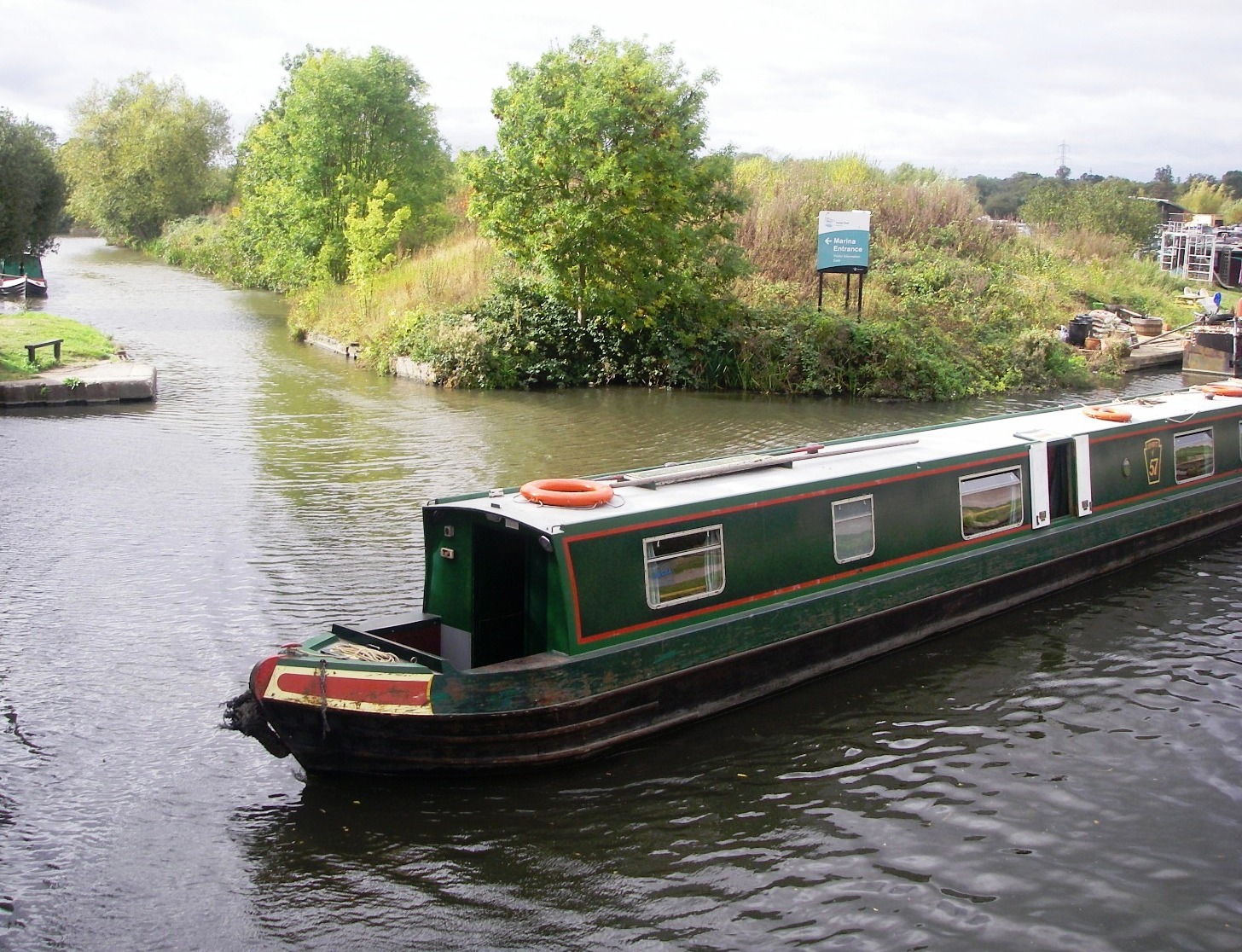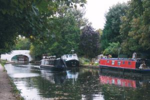 2: Coy Carp pub. From the pub continue past the Broadwater Lake Nature Reserve to reach the River Garden pub. A little further on the canal goes under the new bridge constructed for the HS2 railway line, followed by the one carrying the Chiltern Railway line. The next lock is Denham, the deepest on the Grand Union Canal. Just before the busy A40 a footbridge on the right leads to the Denham Country Park where there are amenities.