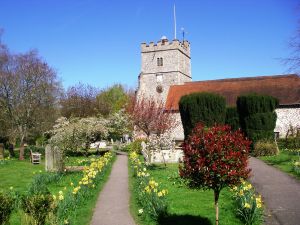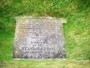 3: Stanley Spencer Gallery. Keep ahead but soon bear left along alleyway, turn right through the churchyard of Holy Trinity Church and pass Stanley Spencer’s grave. Turn left along the river bank through the water meadows. Cross the river via the railway bridge. For Bourne End Station turn right then left up steps on footpath, but to continue the walk turn left past the marina. At the start of the water meadows, the Spade Oak may be reached by carefully crossing the railway and going along the lane.