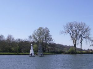 2: Ray Island. Continue along the road past the lock then take the river path at the Thames Path sign. Just past the weir the Jubilee River diverges from the Thames. The steep slopes of the Clivedon estate are across the river and further on is Spring Cottage, where John Profumo and Christine Keeler held their rendezvous. The path leaves the riverside and after half a mile joins a lane leading into Cookham. Turn right at the main road, soon coming to a road junction. The Stephen Spencer Gallery is on the left.